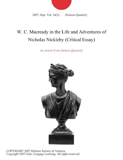 - Title: W. C. Macready in the Life and Adventures of Nicholas Nickleby (Critical Essay)